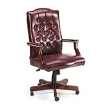 Boss Traditional Executive Oxblood Vinyl Chair With Mahogany Finish OxbloodProduct Description: Classic traditional button tufted styling, Beautifully upholstered in oxblood (burgundy) caressoft vinyl, Elegant Mahogany wood finish, Hand applied brass head nails, Pneumatic gas lift seat height adjustment with adjustable tilt tension and tilt-lock, Dimensions: Seat Size: 21.5-inch W x 20.5-inch D, Seat height: 20-inch- 23-inch H, Overall Dimensions: 26.5-inch W x 28-inch D x 43.5-46.5-inch H