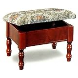 Cherry Finish Wood Footstool/Stool with Hideaway Storage in Queen Anne Style and Cream Damask Covered SeatThis is a brand new Cherry Finish Wood Footstool with Hideaway Storage.The footstool is crafted in a Queen Anne Style, with a Cream Damask Covered Seat.Seat fabric is woven of high quality fibers and is very durable.Item is crafted to perfection to match the beauty of your bedroom decor. Specifications- Dimensions: 15 1/4"L x 11 3/4"W x 10 1/2"H- Style Type: Queen Anne- Materials: Pressed wood- Color: Cherry- Pieces: 1- Finish: Cherry WoodAdditional Information:Manufacturer - VisiondecorInstructions - Assembly Required