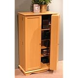 This mega multimedia storage unit holds up to 495-CD's/DVD's. The beautifully framed doors swing open to 5-adjustable shelves on the inside of each door. The doors come pre-assembled to make the unit easy to assemble. The top of the unit is shaped and the bottom frame is sculpted on all three sides to give the unit a designer look. The 4 adjustable shelves in the back of the unit are great storage for your DVD's,CD's or VHS tapes. Constructed of composite board and highly durable PVC laminate. Clean with a dry non abrasive cloth. Assembly required.