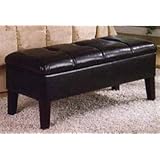 What a beautifully crafted upholstered storage bench. This bench is perfect for any den, living room, entry way, or the end of bed. This bench will fit perfectly in the home and will meet your storage and seating needs. The large tufted top, which comes with a locking hinge, opens to a fully lined storage area that is great for storing blankets, gloves, scarf's or whatever your needs might be. The thick solid wood legs are finished in a rich espresso finish. Constructed of wood and fabric. Clean with a dry non abrasive cloth. Light Assembly required.