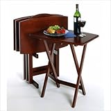 Click Here to see more reviews about: 5PC Walnut Finish TV Tray Tables with Stand