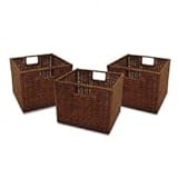 This set of three wicker baskets is ideal for use with the Espresso Wide and Narrow Storage Shelves.