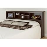 Bookcase Style Espresso Finish King Size Storage HeadboardThis 11* deep bookcase-style headboard has 6 compartments, providing ample space for bedside reading materials, clocks, photographs and decorative accessories. It can be used with any King sized bed frame or is an ideal companion with Prepac*s platform storage beds.This product is made from composite woods with an attractive MDF top and moldings.Product ships flat-packed and self-assembly is required. Detailed and easy-to-follow instructions are included.Coordinate with other Prepac bedroom furniture.Made in Canada. Also Available in Black, Cherry, Maple or White Finishes. Dimensions: 81.5"W 11"D 43"H