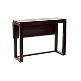 The Ellington bar table from Pinzon offers a wide variety of uses and looks great in any interior space. Set it up as a bar or console in the dining room or rec room, or use it as a space-saving eating surface in a galley kitchen. A drop-leaf shelf allows for cutting the table surface in half when surface needs are less, or adding space when a full-on dining experience is in order. The table's drop-leaf legs swing 180 degrees to tuck under the table for efficient use of space. Versatility in design and color allows the bar table to blend in most any decor. For a more accessorized look, pair the bar table with other pieces of the large coordinating Ellington collection, which includes chairs and stools, as well as side and console tables.
