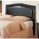 This handsome contoured headboard is great for any queen size bed. The outside of the headboard is finished with nail head trim to give it a designer look. The legs are finished in the rich pace fabric to match the headboard and are able to attach to most metal frames The rich brown PVC fabric that covers the rest of the headboard gives any room an elegant look. The soft edges are just an added feature to the design of this headboard. Constructed of wood and faux leather. Clean with non abrasive dry cloth. Light Assembly required.