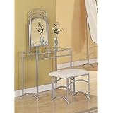 Click Here to see more reviews about: Modern Streamlined Silve Metal Vanity Table Mirror & Stool Bench Set