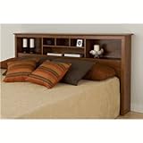 Bookcase Style Cherry Finish King Size Storage HeadboardThis 11* deep bookcase-style headboard has 6 compartments, providing ample space for bedside reading materials, clocks, photographs and decorative accessories. It can be used with any King sized bed frame or is an ideal companion with Prepac*s platform storage beds.This product is made from composite woods with an attractive MDF top and moldings.Product ships flat-packed and self-assembly is required. Detailed and easy-to-follow instructions are included.Coordinate with other Prepac bedroom furniture. Made in Canada. Also Available in Black, Espresso, Maple or White Finishes. Dimensions: 81.5"W 11"D 43"H