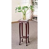 White Marble Top Plant Stand with Cherry FinishThis is a brand new White Marble Plant Stand with a Cherry Finish Base.This new item will present plants and other items in your house with sheer elegance.The legs of the item are designed with a Queen Anne era motif in the base and end of the legs.The grey marble top insert nicely accents the table to be classy and elegant.There is also a bottom tier for extra use of the table and adds to the support of the legs.The wood on the table is also hand finished in a Cherry stain of which adds to the beauty of the item to match and enhance any home decor setting.Specifications- Dimensions: 13"L 32 1/4"H- Style Type: Queen Anne- Materials: Wood/Marble Top- Color: Cherry- Pieces: 1- Finish: CherryAdditional Information:Manufacturer - visiondecorInstructions - Assembly Required