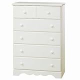 This elegant 5-drawer chest features fresh clean lines, profiled edges, and astylized decorative kickplate that will highlight any decor. Part of thecollection's 6-piece bedroom furniture ensemble.▪ Fresh Vanilla Cream finish▪ Wooden knobs▪ Plenty of drawer space ▪ Profiled edges on tops, fronts of drawers, and on kickplate▪ Design matches South Shore's 3294 Summer Breeze Blueberry collection▪ Decorative groove separating upper drawers gives a "multiple drawer" effect▪ Innovative drawer Smart Glides with lifetime warranty ▪ Child-friendly safety catches on drawer glides▪ Manufactured from engineered-wood products▪ 5-year warranty▪ Assembly required▪ 5 additional pieces round out this timeless country ensemble▪ Item Dimensions:31"x16"x45"