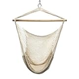 This has to be one of the finest rope chairs available. Sit down and it surrounds and suspends you in over a mile of soft 100% natural cotton. Or if you really want to relax - kick back, stretch out and recline. It is beautifully crafted, and complete with all the hardware to use inside or outside and is the ultimate single point hammock. Think of it as poetry in motion. Slow motion. Sink into it.