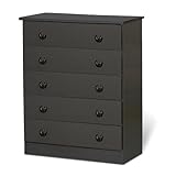 Prepac Black 5-Drawer ChestProduct Description: Ideal for any bedroom, three finishes are available to match individual tastes and decor.Sides, top, drawer fronts and kickers are made from 5/8" thick laminated composite board. The drawer components are a High Density Fiberboard (MDF) and slide smoothly on nylon glides with built-in safety stops.Drawers can be easily removed for cleaning or moving.Each drawer has two contemporary "u" shaped pulls.